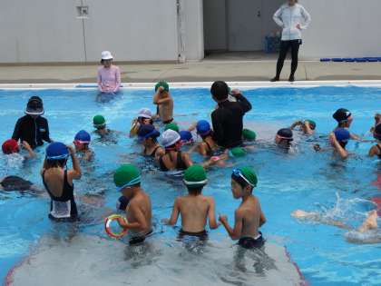 上:プール開放も行っています。「特練」には港中学の体育科の福西先生も指導に来ていただきました!