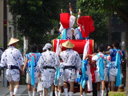 中:地元の「三津神社」の夏祭りです。本校の児童も参加しています。なお、境内には児童の絵画も展示されています♪