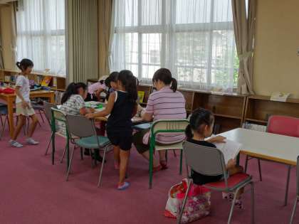 下:こちらは「図書館開放」です。八幡屋の子どもは暑い夏休みも「勉強一本!」ですネ(すごい!)(やればできる♪)