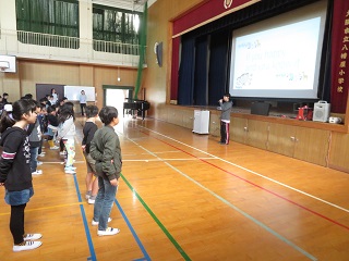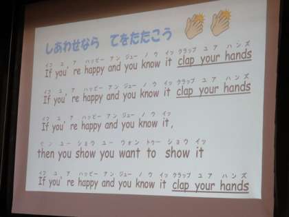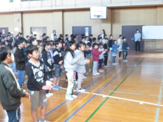 なかなか難しいですが、低学年は手拍子などで参加、高学年は上手に歌えていました。