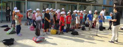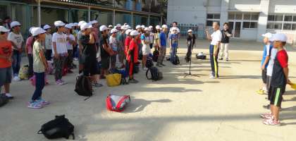 暑すぎる晴天の下、出発式を終え、5年生全員元気に出発です。