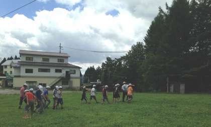 下段:他の子どもたちは、高原で虫取りや観察をしたり、走り回ったりしています。