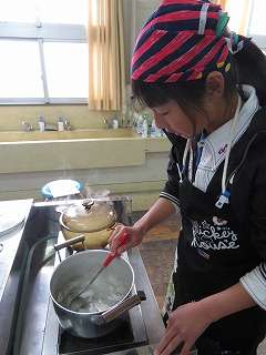先日、5年生の家庭科で調理実習を行いました。メニューは、ごはんとみそ汁です。