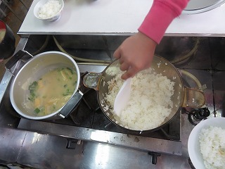 「だしに使う煮干しのはらわたって、これなんだ」「お鍋でごはんを炊いたら、おこげがたくさんできた」など、実際に作ってみると、たくさんの発見があったようです。どの班も美味しく作ることができました。