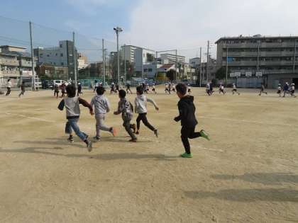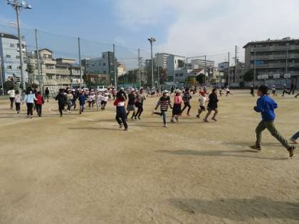 月火木金の3時間目のあとの休み時間に、運動場を5分間走ります。