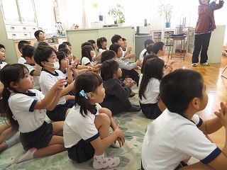 子どもたちは、よく聞いていて、給食前の手洗いでさっそく実践していました。