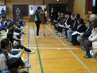 司会やあいさつは6年生の有志が担当し、英語!と日本語でアナウンスしました。