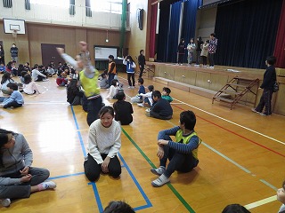 この日の児童集会は、「先生の声あてゲーム」でした。