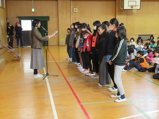 そのほか、「読書ノート」のめあてを達成した児童の表彰や、キックベースボールチームの表彰がありました。