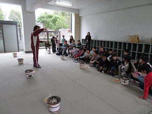 今日、3年生は炭火による「もち焼き」を体験しました。