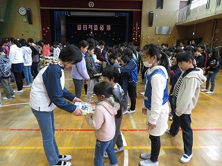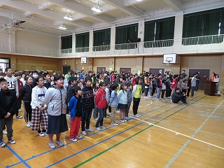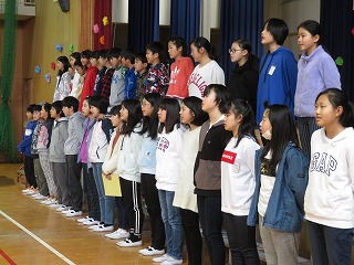 中下 校歌斉唱 本年度、全学年で一緒に歌うのもこれが最後です。
