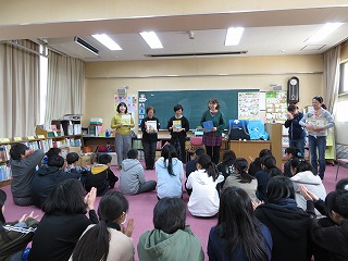 この日は、6年生が、読み聞かせボランティアの方々に卒業記念の読み聞かせをしていただきました。