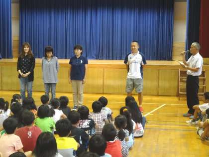 中段:2学期から、授業で、子どもたちの学習の手助けをしていただく「学習サポーター」の先生の紹介。計5名の先生が毎日1人ずつ来られます。