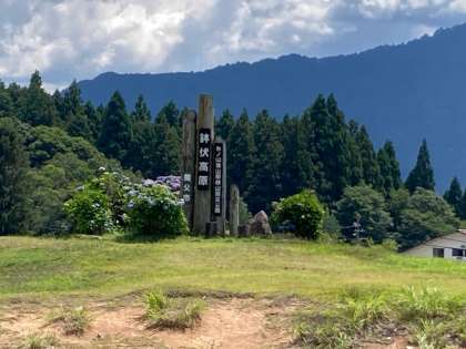 お弁当の後、ハチ高原のモニュメントで全体写真を撮りました。
