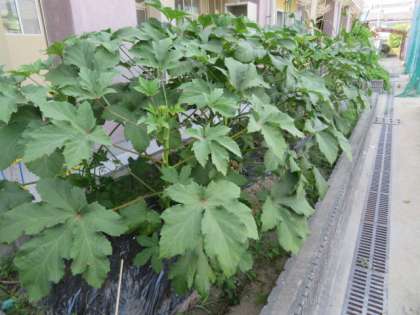 学習園で育てている植物が日差しを浴びて大きく育っています。
