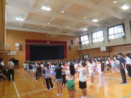 8月の間は4時間授業、給食終了後に下校します
