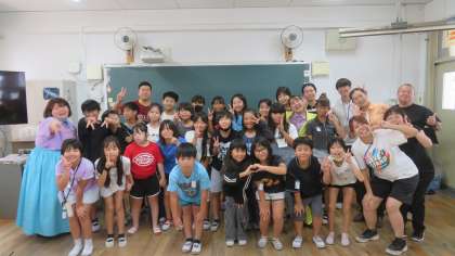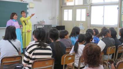 児童の発表の後にはサプライズで先生たちの漫才、そしてプロの芸人さんの漫才の披露があり、教室中笑いが絶えない時間となりました。終了後記念撮影などもして、子どもたちにとって良い思い出となりました。吉本興業の方々、本日はありがとうございました。