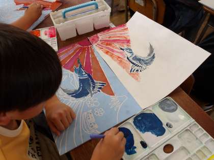 図工で版画をしています。