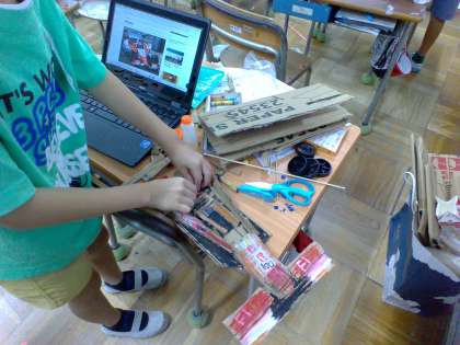 集めた材料を使い、自分のつくりたい車をイメージして制作をしています!どんたところを工夫したのか、こだわったのか、聞いてみたくなります(^▽^)