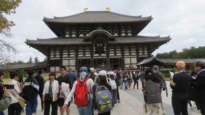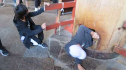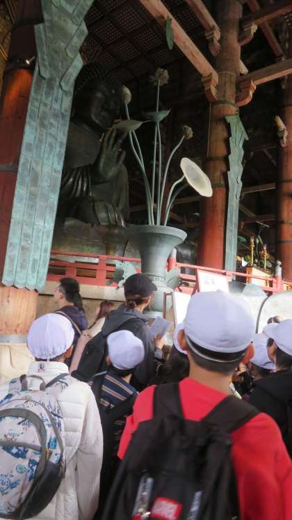 東大寺では子どもたちが大仏の大きさにびっくりしていました。見学の後、柱くぐりに挑戦しました。うまくくぐることができたかな?