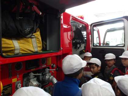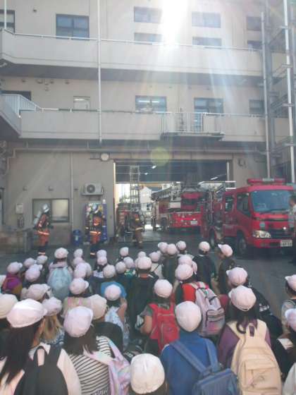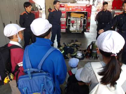 先週の社会見学で港消防署に行きました。実際に勤務する隊員の訓練や、説明に興味深く聞き入る児童の姿が印象的でした。