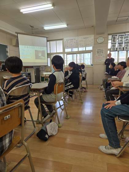 国語の『和の文化』について学習した後、池島小学校の児童と交流授業を行っています。『和の文化』について自分で調べたことについて、火曜日に本校児童が発表し、今回は池島小学校へ伺い、発表を聞きました。パワーポイントを上手に使い、とても分かりやすい発表でした。