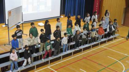 3年生『この地球(ほし)の続きを〜八幡屋(ここ)から〜』の様子です。SDGsについて劇や歌でみんなへ上手に伝えています。
