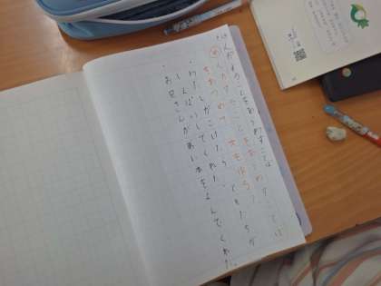 絵を見て、人がすることを表す言葉について文章を書きました。