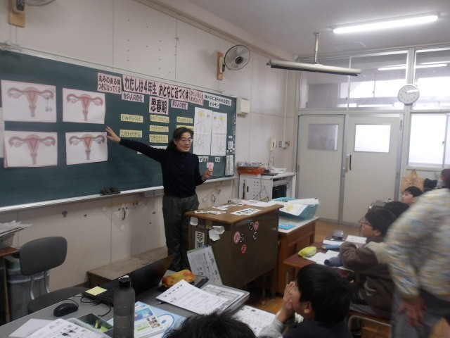 養護教諭が保健体育科で、これから入る思春期の体の成長について授業をしました。