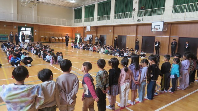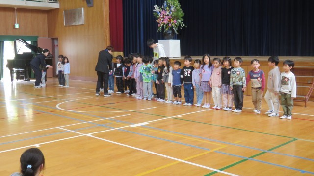 新しく八幡屋小学校に来られた教職員の方々の着任式・新1年生の児童を迎える対面式がありました。代表委員会や6年生が上手に司会や、歓迎のあいさつをしていました。新1年生32人の子どもたちは、最初は緊張している様子でしたが、最後にはニコニコの笑顔で式に参加することができました。