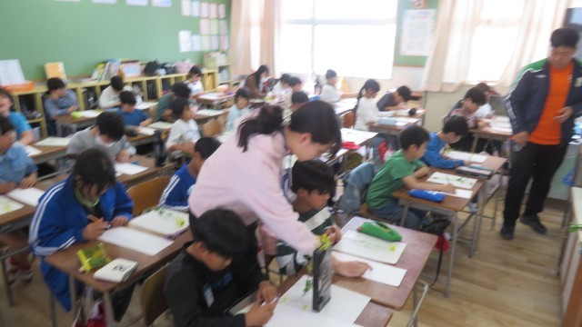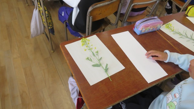 学習園に咲いてあるアブラナのスケッチしました。自分のお気に入りのアブラナ1本を切り取り、描き写していました。