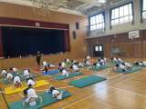 今日は、マット運動でブリッジをしました。手の位置に気をつけながら活動しました。