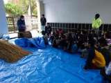1・2年生児童が今日の午前中、紅葉の八幡屋公園に行き、落ち葉拾いをしました。