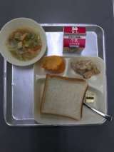 パン 牛乳 鶏肉のガーリックマヨネーズ焼き スープ 富有柿 ...