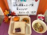 ぶたにくのやさいスープに かわりピザ みかん しょくパン ...