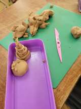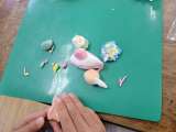 紙粘土を使って、クリスマスパーティのごちそうを作りました。色とりどりで、おいしそ...