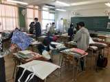 半分ずつの人数なので、教室内もひっそりした感じがします。 持ち帰りの荷物...