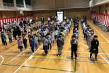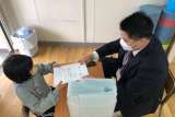 新入生にプレゼントするアサガオの種を入れる袋を作りました。
