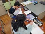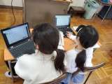 食器で音階楽器づくりに取り組んでいます。鍵盤ハーモニカを使って音を確認しています...