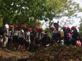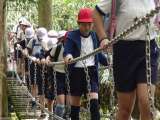 池田城の見学の後は、いよいよ五月山をのぼり始めました。坂道を歩いたり、綱を使っ...
