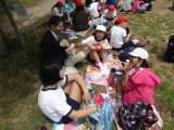 広場についてみんな待ちに待った昼食時間。友だちと一緒にお弁当を食べました。もち...