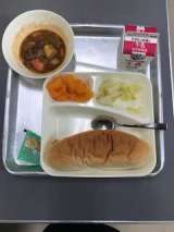 パン 牛乳 ビーフシチュー キャベツのピクルス みかん りんごジャム
