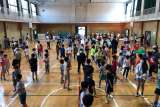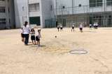 手だけ、足だけと色々な条件で、風船バレーをしました。