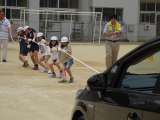 4時間目は、運動場で本物のクルマを使った実験をしました。クルマと綱引きしたり、...