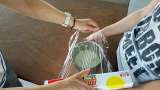作り方の説明を聞き、クリームをホイップし、密閉容器に詰め、ラップをし、ふたをして...