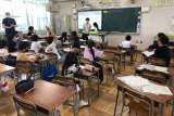 先生からアドバイスをもらいながら、小学校で初めての通知表をいただきました。