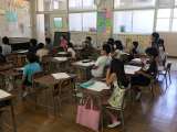 児童朝会の話の後で、 今の話を聞いて、考えて、書いています。 初...