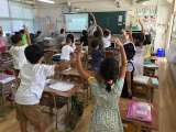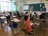 表現運動の学習をしました。 暑さ指数が危険な状態の中なので、 教室で、手...