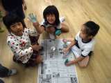 上段:青緑のいちごの形をしたもの。 中段:筒型のもの。上段・中段で作っているも...