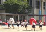 晴天に恵まれた運動会。児童会の合言葉は、「90周年記念 運動会で 感動しあおう!...